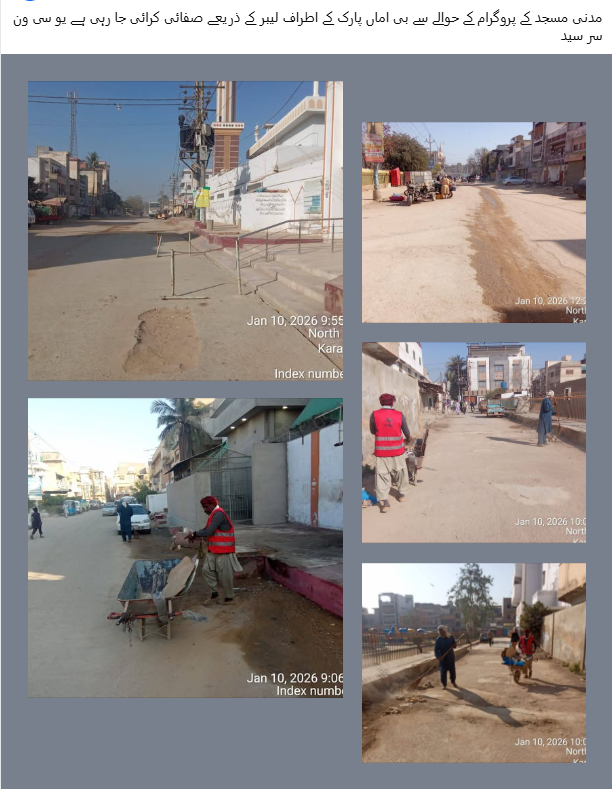 In connection with the Madani Mosque program, cleaning work is being carried out through labor around B-Amma Park, UC-1 Sir Syed.