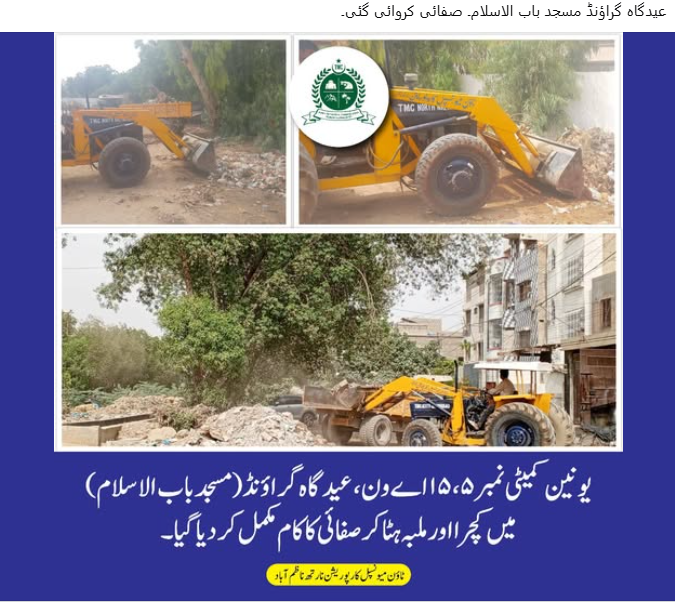 Cleaning completed at Eidgah Ground & Masjid Bab-ul-Islam. 🧹🕌🌿