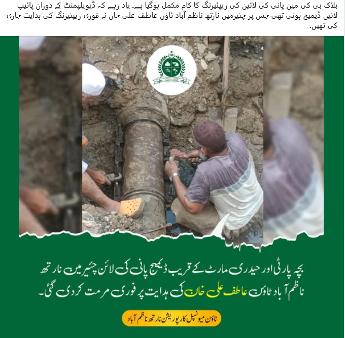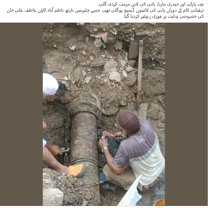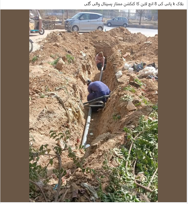 Connection of 8-inch water line in Block K at Mumtaz Hospital Lane