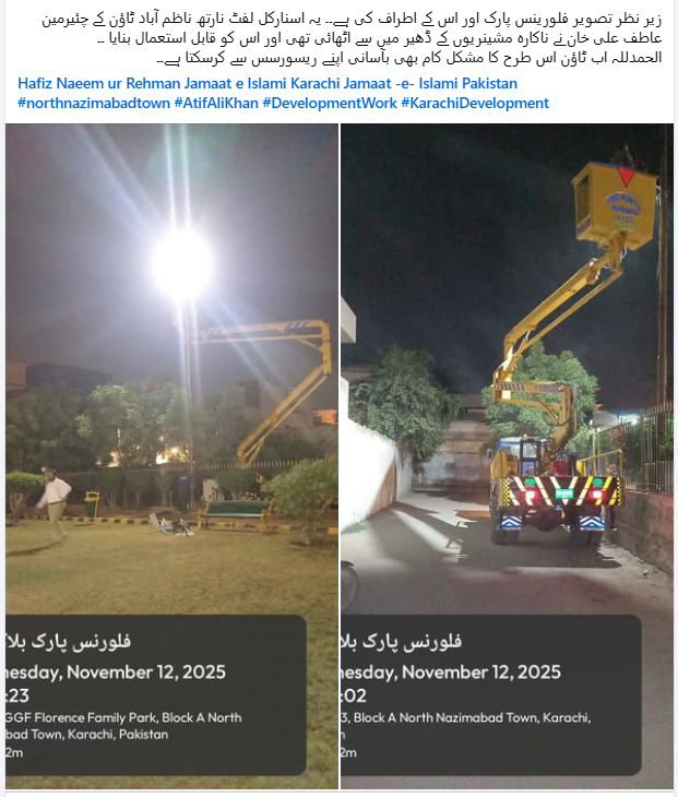 Florence Park Snorkel Lift Restored by North Nazimabad Town Chairman 💪🏽🌳 – Turning Challenges into Action