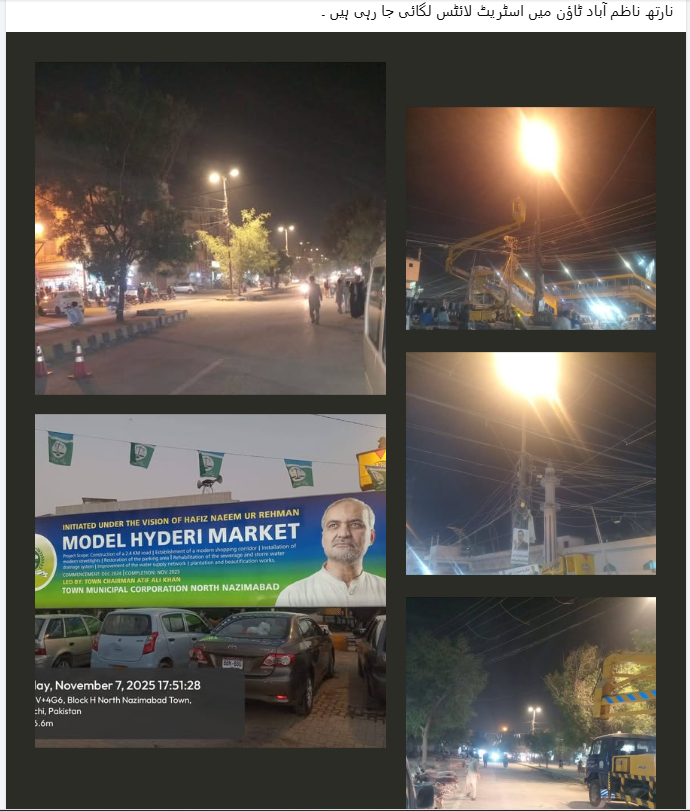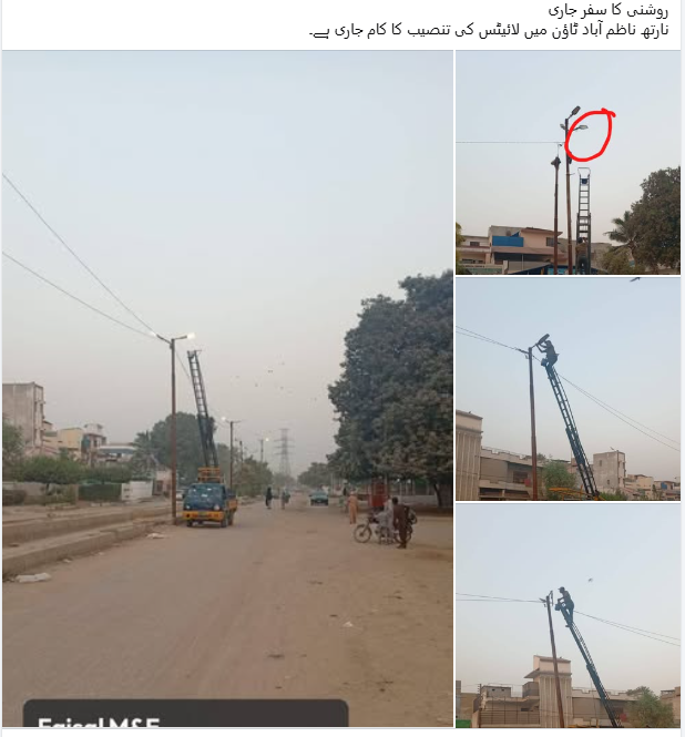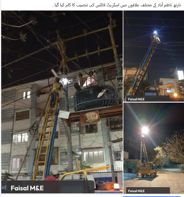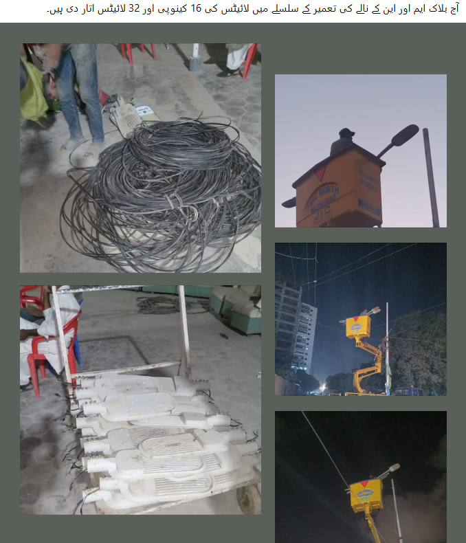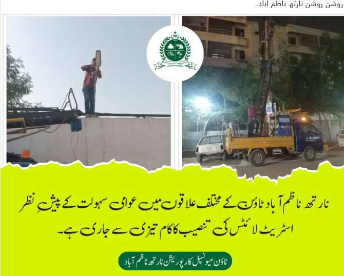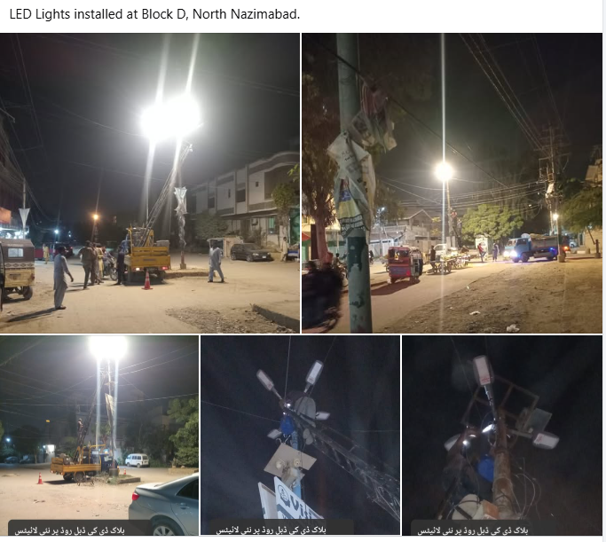 Street lights installation work has been carried out in various areas of North Nazimabad.