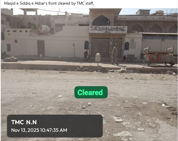 Masjid-e-Siddiq e Akbar's front cleared by TMC staff.