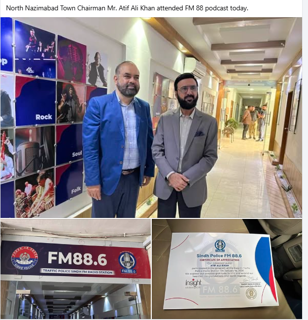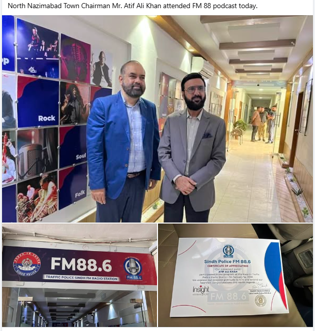 North Nazimabad Town Chairman Mr. Atif Ali Khan attended FM 88 podcast today.