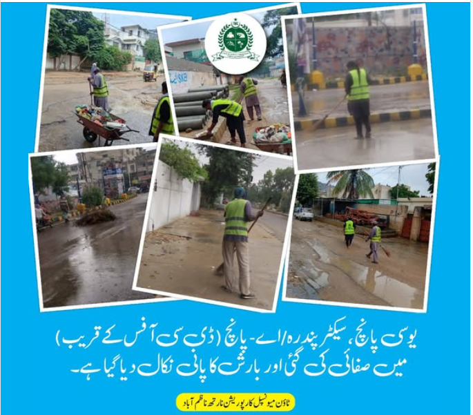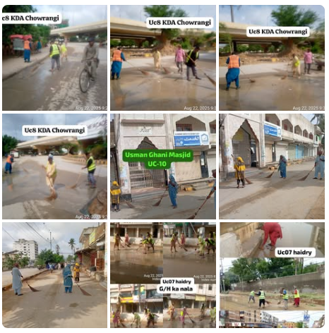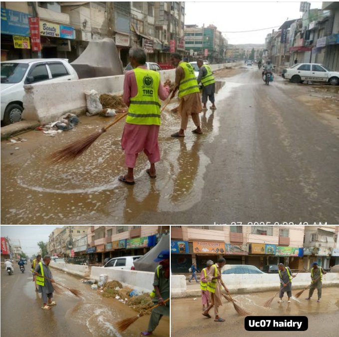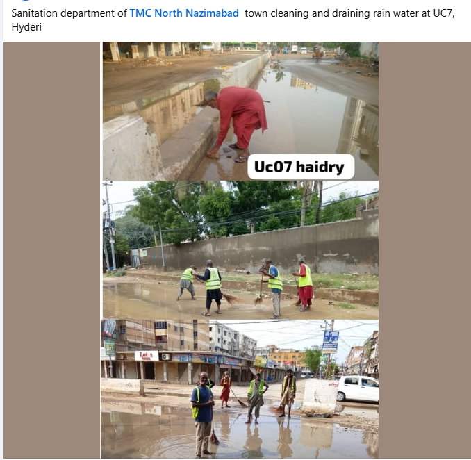 Sanitation department of TMC North Nazimabad town cleaning and draining rain water at UC7, Hyderi