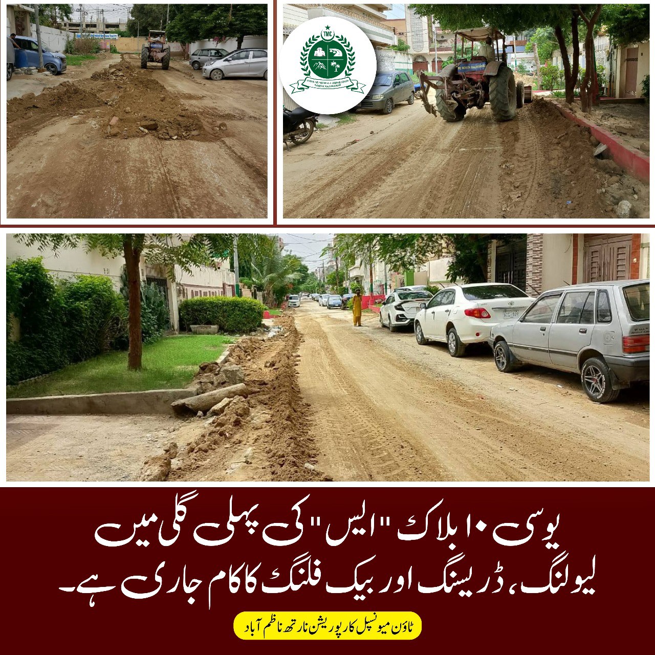 Road levelling and dressing work at #UC10 Block S near Bilal masjid ,North Nazimabad.