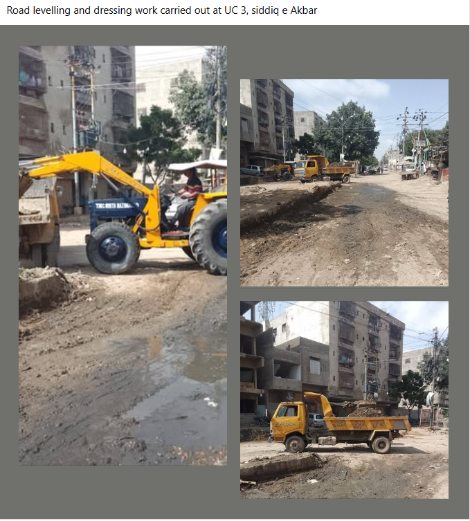 Road levelling and dressing work carried out at UC 3, Siddiq-e-Akbar
