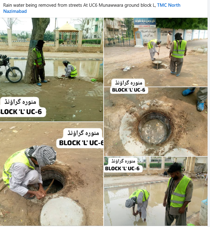 Rain water being removed from streets At UC6 Munawwara ground block L, TMC North Nazimabad