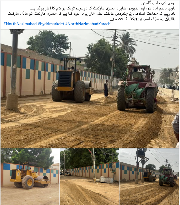 Road Makeover in Progress!🚜🚧💨#haidarimarket #modelmarket #transformation #Development #ShopSmart #cityupgrade #NorthNazimabad🚀🏗️🛍️✨