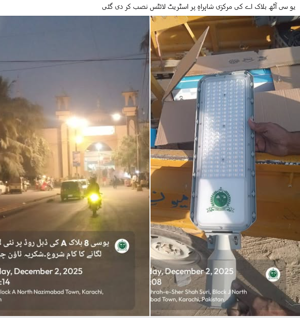 Walk safely. Drive confidently🚶♀️💡 New street lights are up in #UC2! #streetlightupdate #SafeNights #publicsafety #shadman #NorthNazimabad