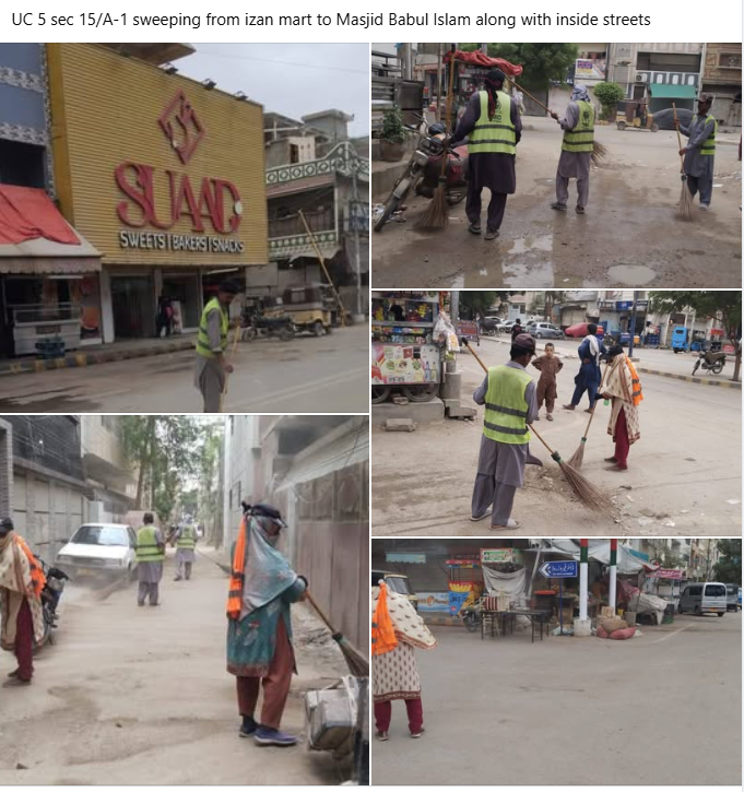 Sweeping from Izan mart to Masjid Babul Islam along with inside streets(UC 5 sec 15/A-1 )