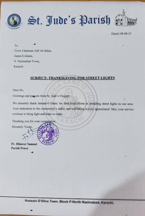 Token of Appreciation from Fr.Dilawar Samuel, Parish Priest of St. Jude's Church.